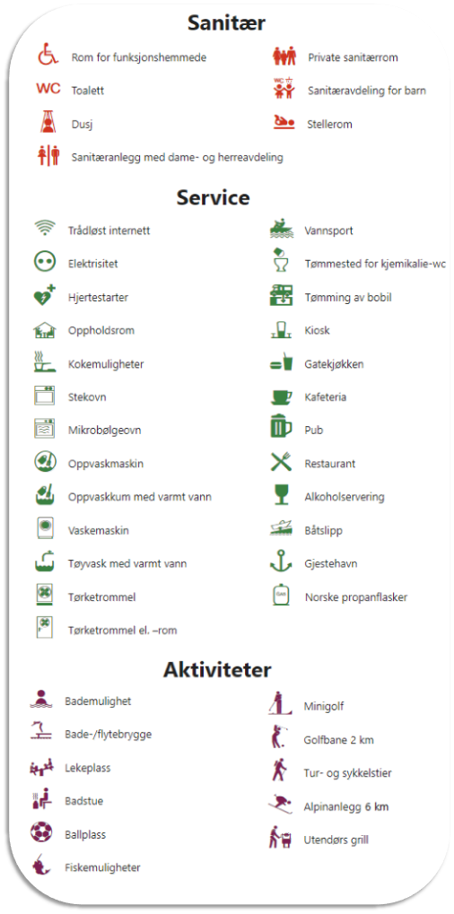 Vi tilbyr nydelige oppstillingsplasser helt ned til fjordkanten for døgnturisten, og alle har tilgang til strøm, gratis kabel-tv og gratis Wi-Fi. Alt kan forhåndsreserveres.